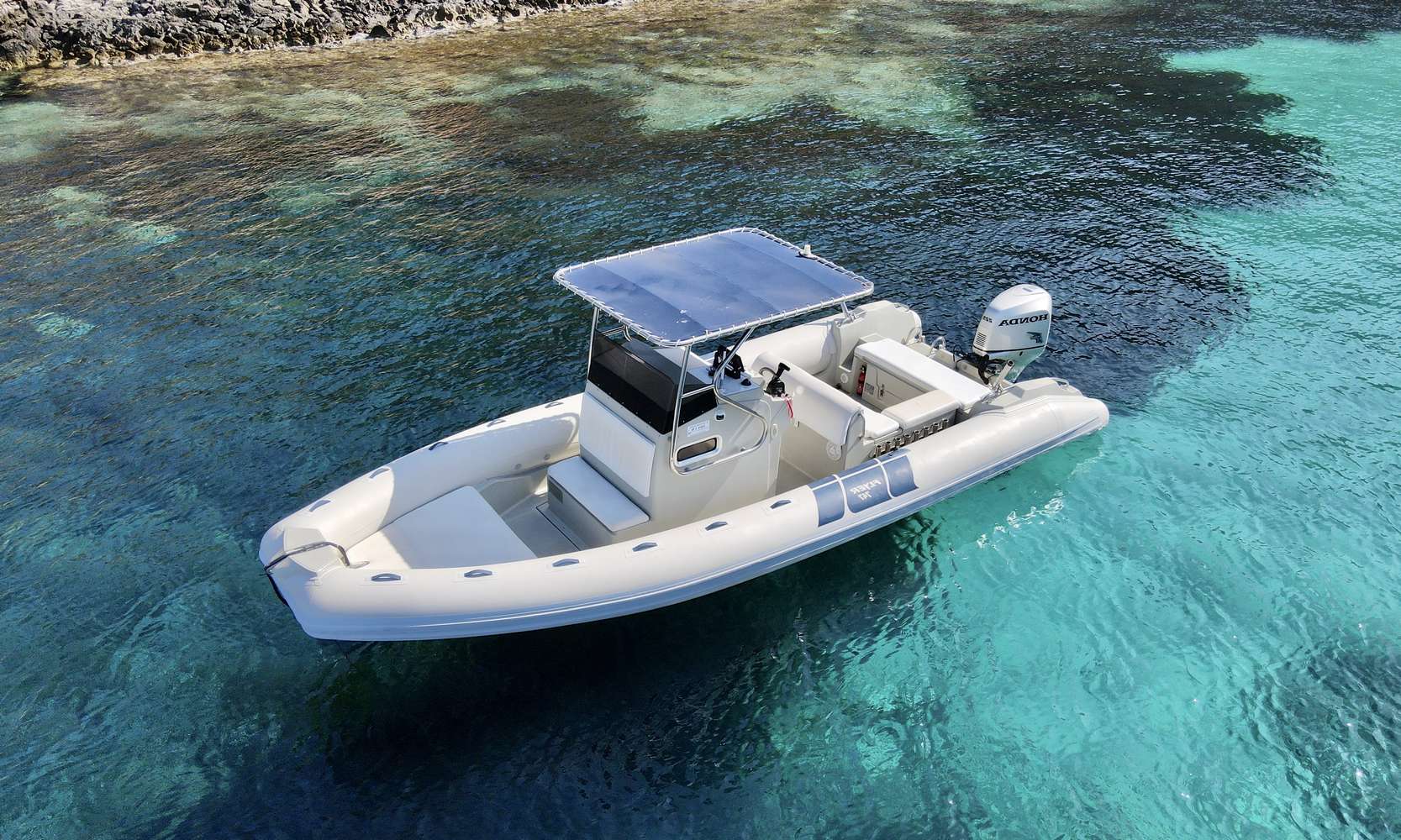 Naviga nel lusso con il nostro top di gamma. Solo con lo skipper, comprende: sea scooter Yamaha, tavola da sup e drone, frigo e bibite, frutta, bottiglia di benvenuto e attrezzatura da snorkeling.