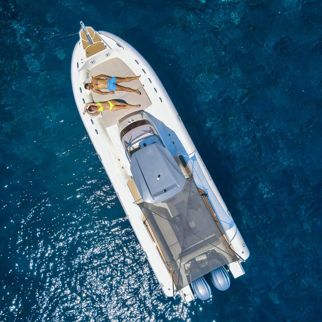 A bordo trovi sempre l’accesso bluetooth, il frigo con frutta fresca e bibite a volontà e l’attrezzatura da snorkeling. E poi su richiesta mettiamo a disposizione: drone, Sup e sea scooter.